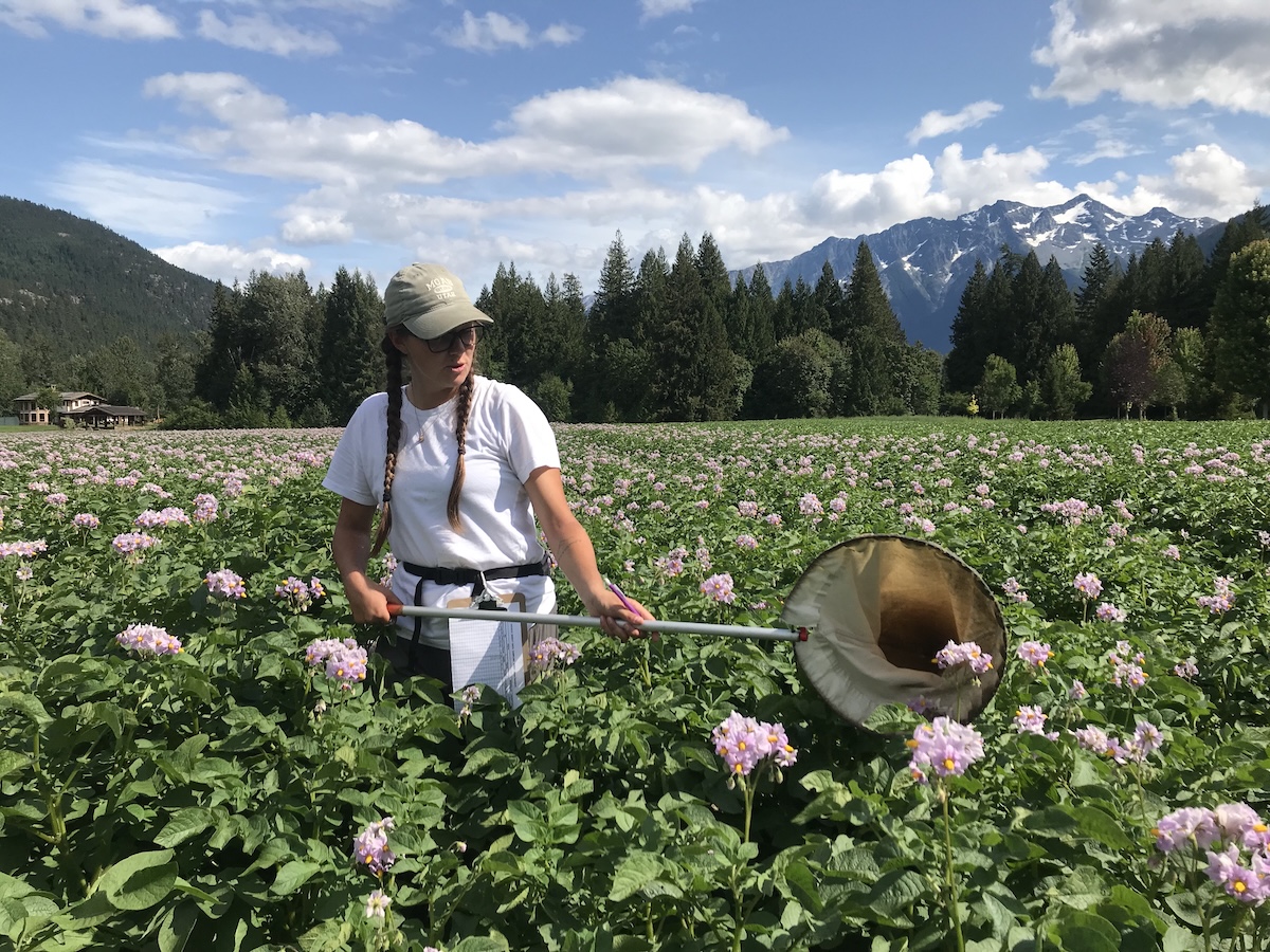 Early pest detection from weekly monitoring, often called scouting, is key to effective management. In organic production, the timing of management is crucial to prevent pest development due to the limited use of chemical controls. We monitor fields by visual inspecting for pests when plants are small (“crawling”). When plants grow taller as the season progresses, potato fields are swept for pests (“sweep-netting”).